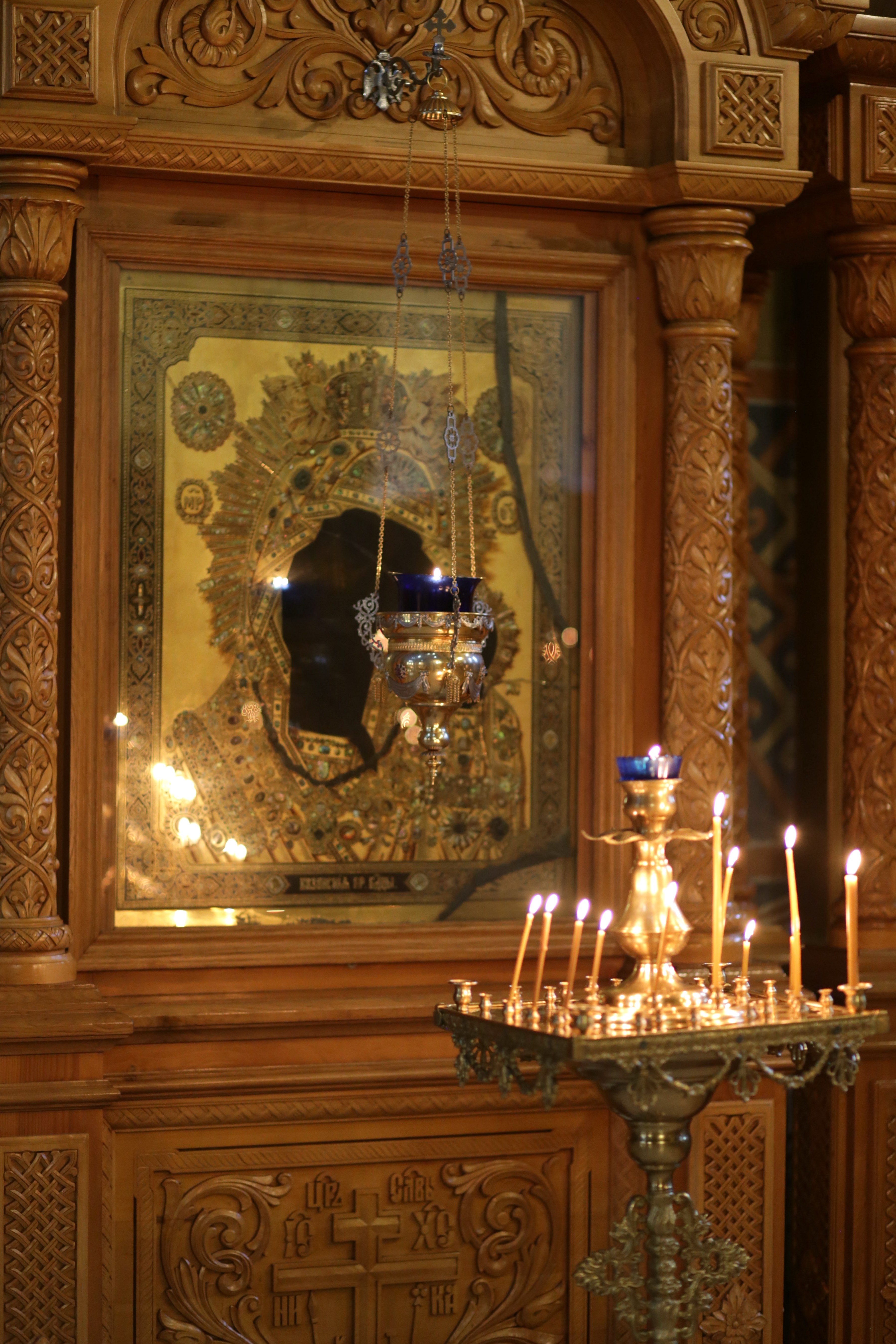 Казанская икона Божией Матери. Изначально находилась в одном из храмов Рязанской губернии, в годы гонений икона хранилась в одном благочестивом семействе и затем была передана в храм.